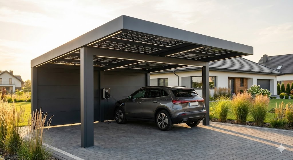 Tak, to jeden z wiodących trendów w 2026 roku. Płaski dach carportu o odpowiednim nachyleniu to idealna powierzchnia pod instalację PV. Możesz stworzyć tzw. Solar Carport, który produkuje prąd bezpośrednio do ładowania Twojego samochodu elektrycznego. To rozwiązanie jest bardzo popularne na nowych osiedlach w Radomiu.