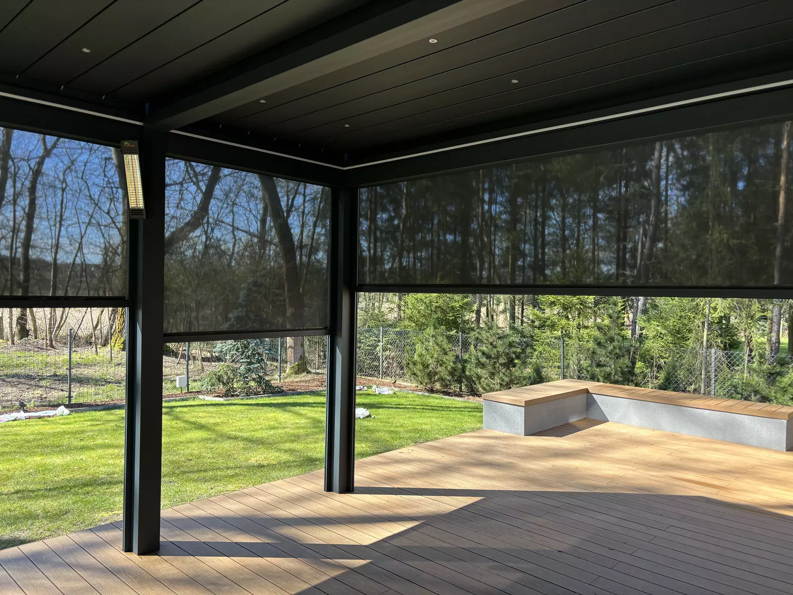 Rolety typu Screen z systemem ZIIIP to inwestycja w komfort cieplny i estetykę całego domu, nie tylko Twojej pergoli. Wykorzystane jako zewnętrzne osłony okienne, działają jak zaawansowana klimatyzacja naturalna.