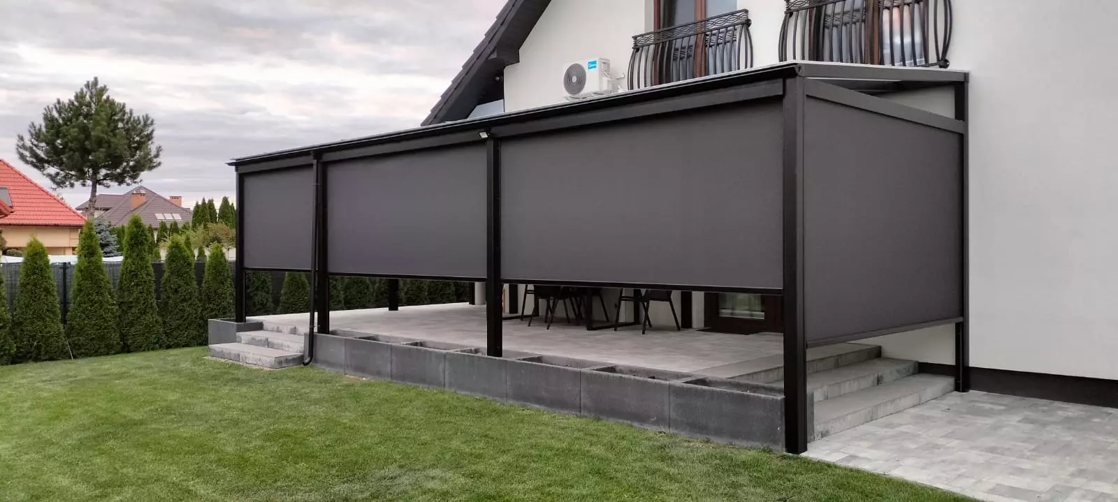 Skutecznie osłaniają taras, pozwalając cieszyć się świeżym powietrzem nawet w mniej sprzyjającą pogodę.