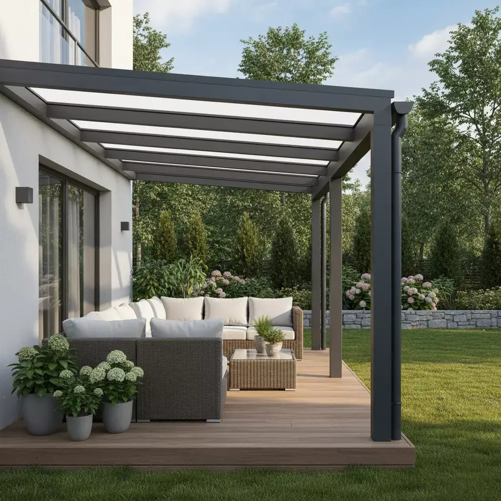 Konstrukcje z niezabudowanymi bokami zachowują otwarty charakter tarasu, idealnie łącząc dom z ogrodem.