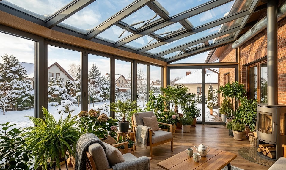 Aby komfortowo spędzać czas w oranżerii w mroźne dni, klasyczne profile aluminiowe z izolacją termiczną (tzw. „ciepłe profile”) muszą być wsparte niezawodnym źródłem ciepła. Pamiętaj, że szkło wychładza się znacznie szybciej niż ceglana ściana.