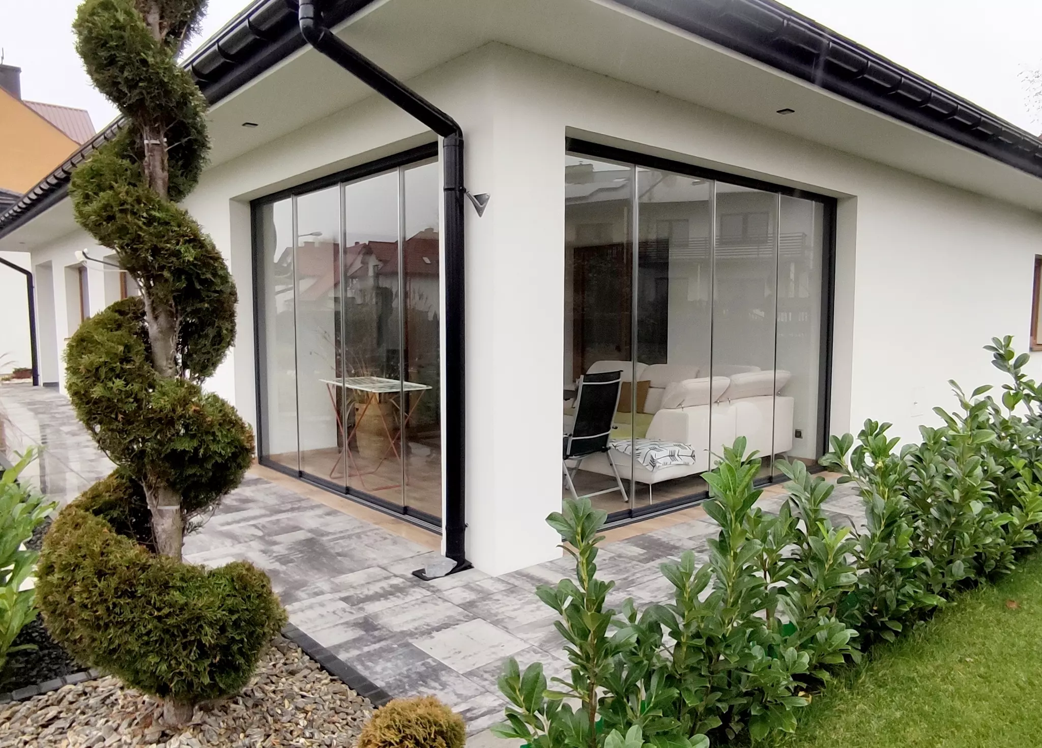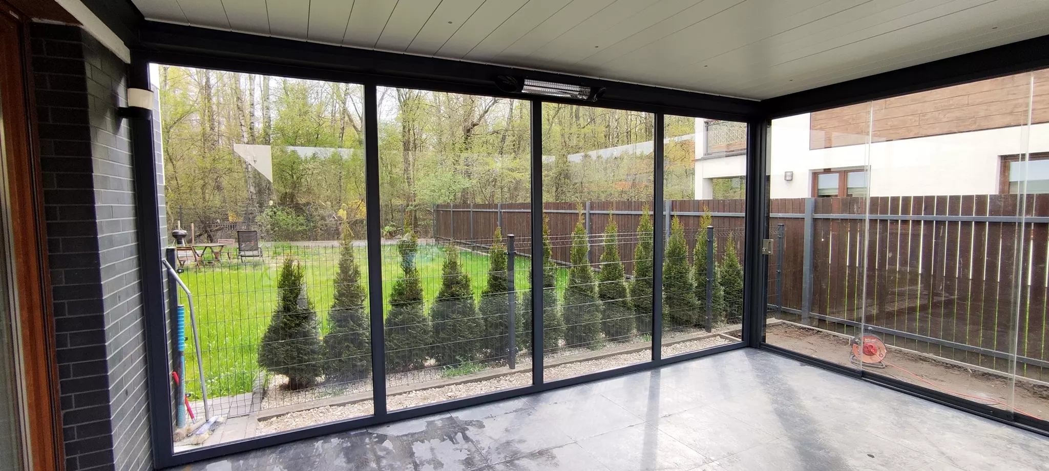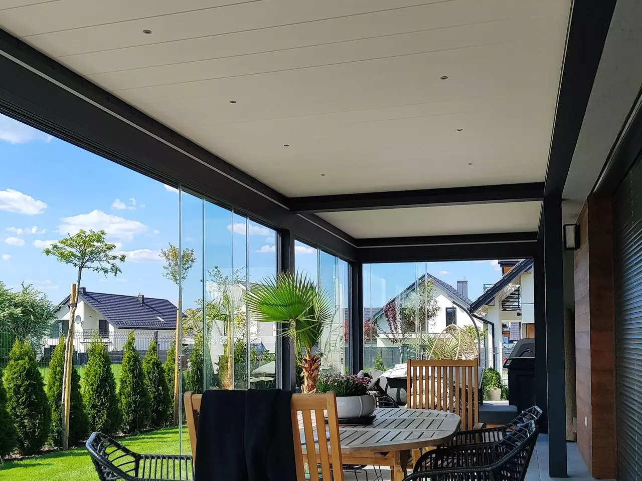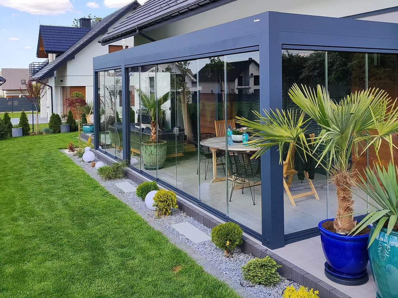Transparentne szkło zapewnia nieograniczoną panoramę na otoczenie. Ciesz się pięknem ogrodu i naturalnym światłem, mając jednocześnie poczucie intymności i schronienia.