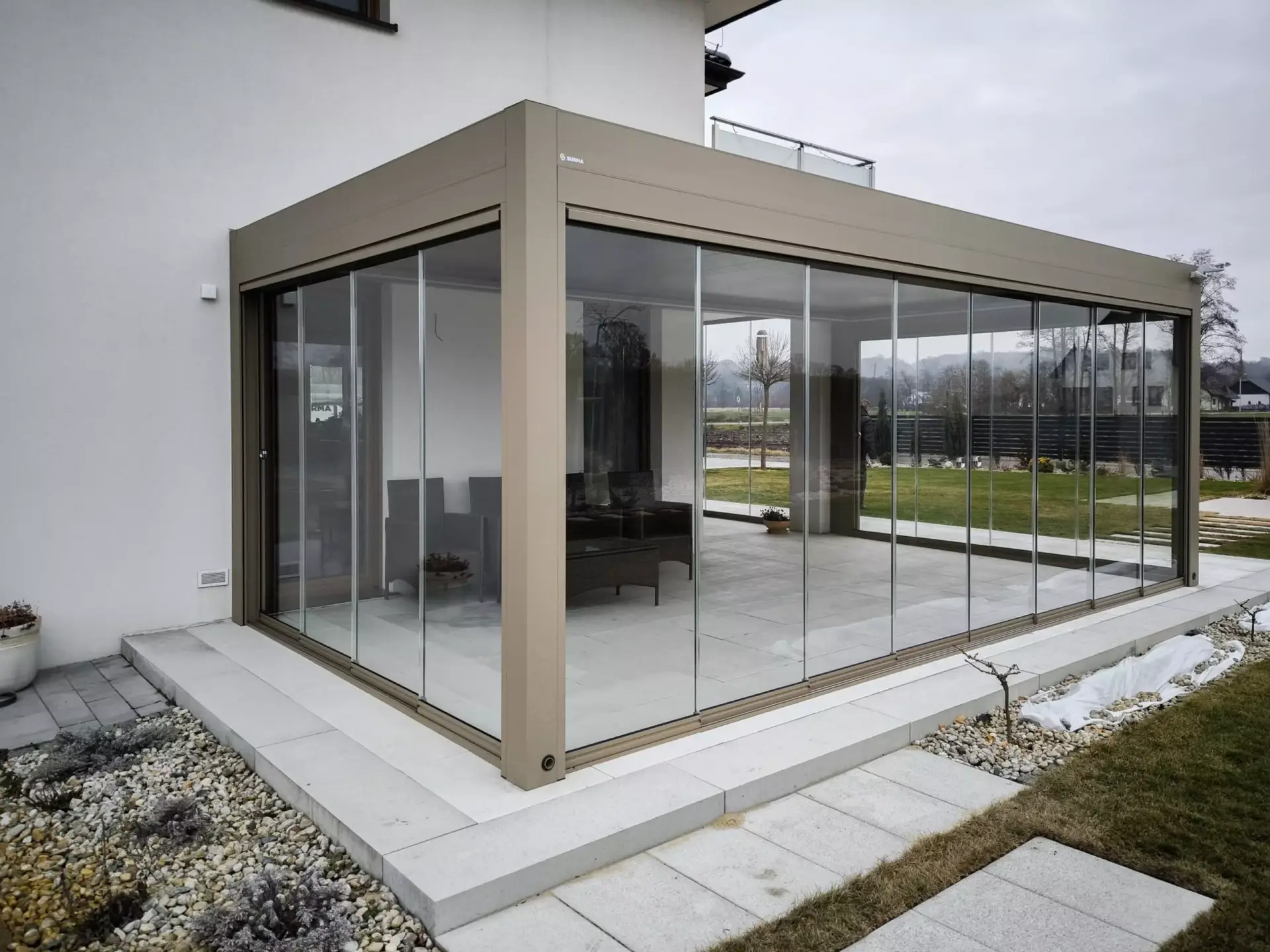 Chcesz korzystać ze swojej pergoli niezależnie od pogody? Zabudowa szklana przesuwna to klucz do maksymalnego wykorzystania Twojej przestrzeni zewnętrznej przez cały rok.