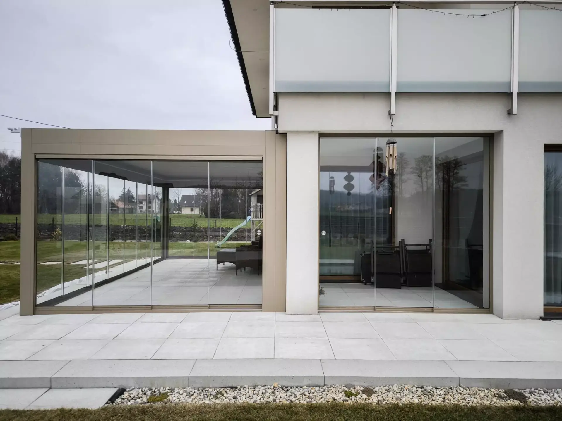 Dlaczego warto wybrać szkło przesuwne do Twojej pergoli?Szklane ściany skutecznie chronią przed wiatrem, deszczem, a nawet niższymi temperaturami, zamieniając taras w przytulny, zadaszony salon – bez utraty kontaktu z ogrodem.